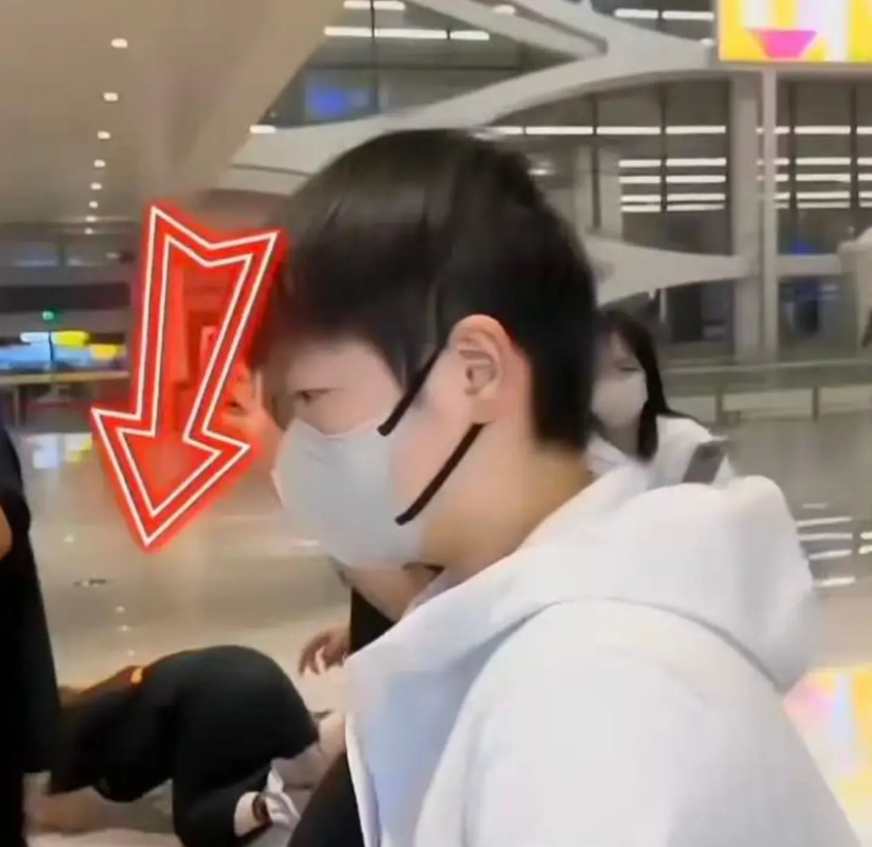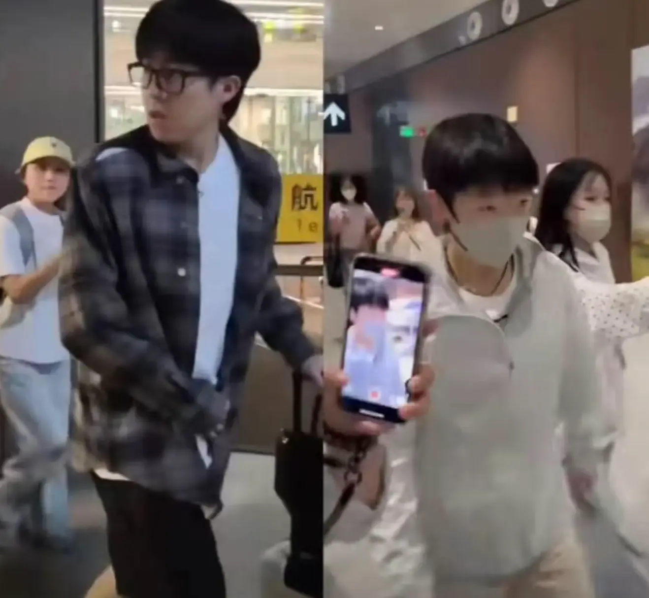 机场外的人群将出口围得水泄不通,有人举着手机对着她不放,甚至有行人被推倒。