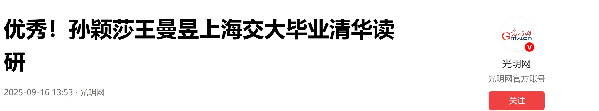 优秀!孙颖莎王曼昱上海交大毕业清华读研——光明网