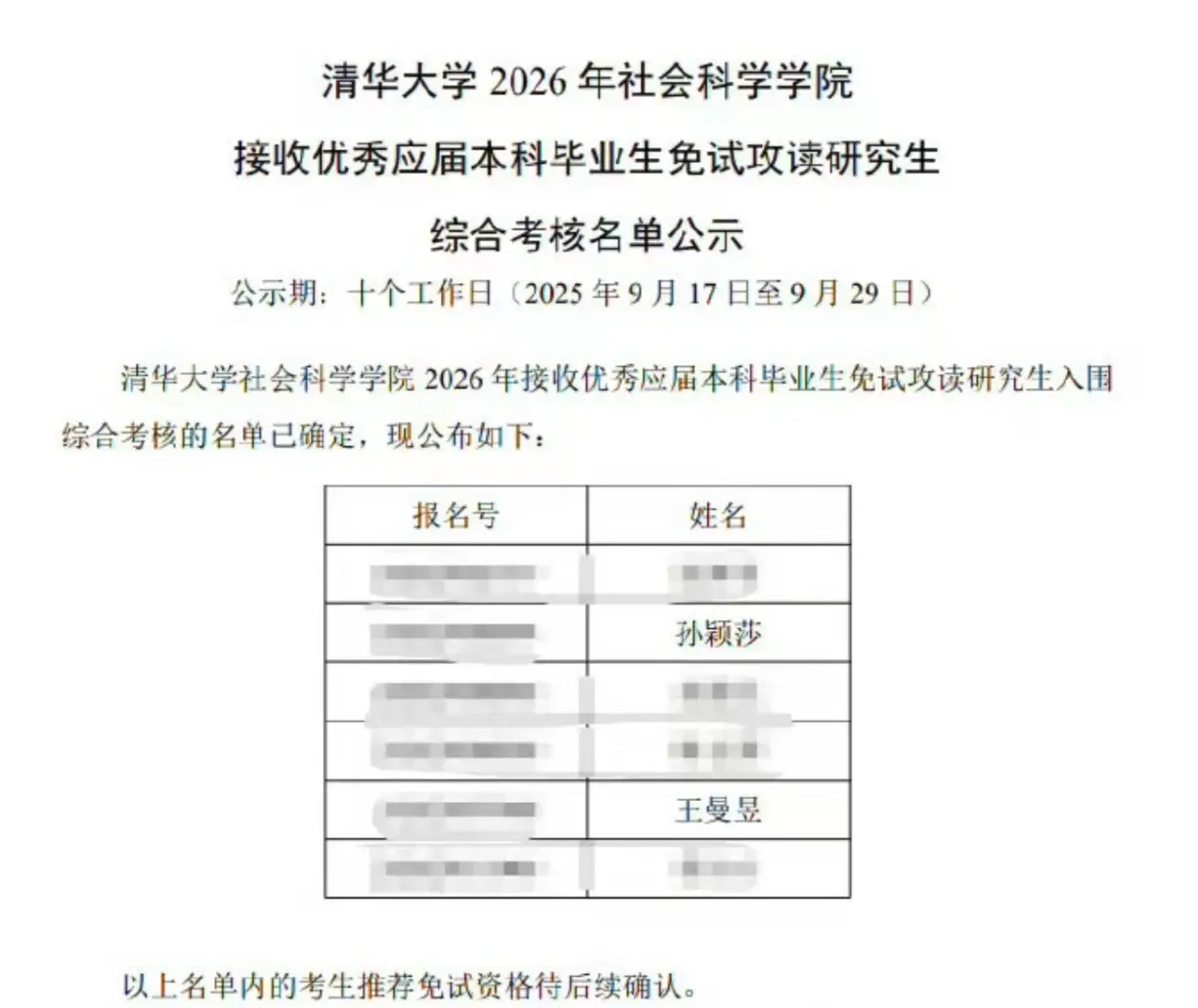 就在这场激战结束的48小时后,9月16日清华大学公布了免试攻读研究生的综合考核名单。